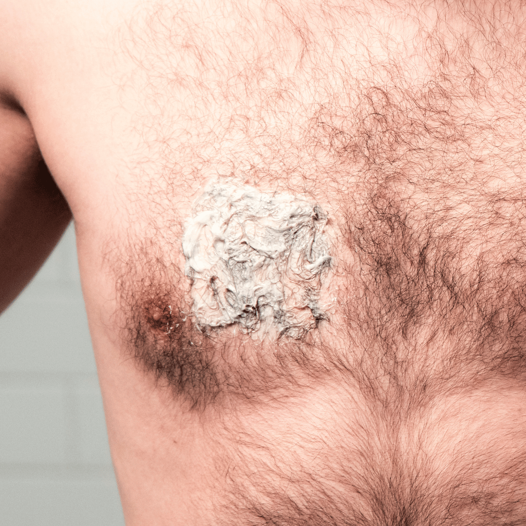 The cream contains active ingredients that dissolve the hair shaft at the root. You apply it, wait 4 minutes, wipe it away, and you're done. No razor, no trimmer, no drama.